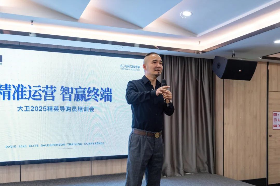 2025年6月4日至5日,以“精准运营,智赢终端”为主题的大卫2025精英导购员培训会在南浔召开。这场为期两天一晚的培训会,通过系统化课程设计与实战演练,全面提升终端服务能力和运营水平,为突破年度市场目标注入新动能。会议特邀行业资深培训师:武明老师。来自五湖四海,因共同的事业相聚于此的大卫人,为提升终端销售效能、精进专业素养而全力以赴,为大卫品牌的发展凝聚力量。