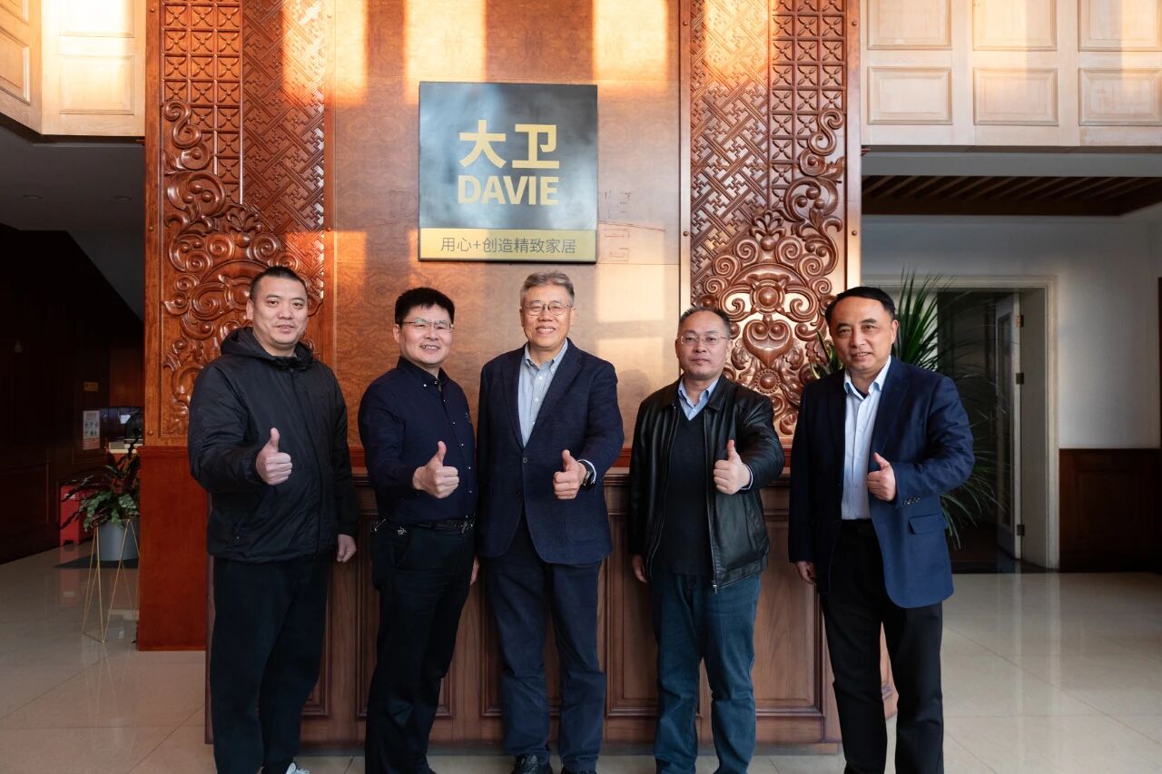 中国林产工业协会会长周鸿升(左3)一行莅临大卫参观指导