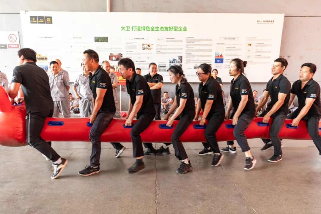 2025年5月30日,苏州大卫木业有限公司每年一度的趣味运动会如约而至,今年已到第27届,灵巧的身姿,密切的配合,一张张洋溢着青春的笑容,一段段欢乐幸福的时光,精神抖擞的大卫人在这里上演了一出团队拼搏大战——携手奋进、直面挑战!本次运动会士气展示、拔河、 财运滚滚、 气球传递、勺子乒乓球传递、呼啦圈过山车、消防竞技赛、鼓鼓人心、穿衣接力赛、不倒森林、旱地龙舟、夹纸运杯传递共12个比赛项目,突出集体参与,团队合作,既注重趣味快乐,也有挑战难度。现在,让我们去看看这场high翻天的员工运动会的精彩时刻吧!